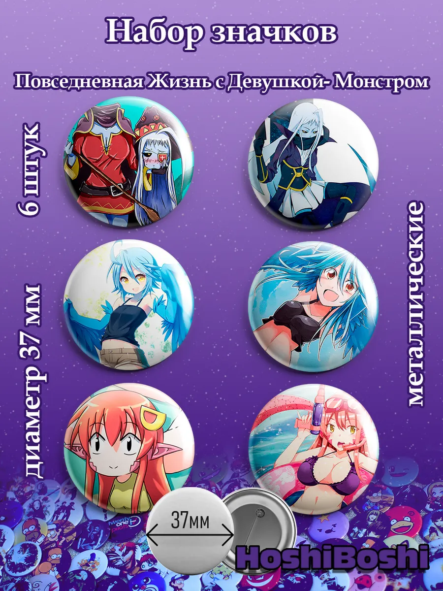 Набор из 6 металлических значков с изображениями из аниме Повседневная жизнь с девушками монстрами ( Monster Musume ).