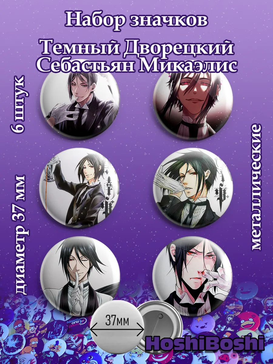 Набор из 6 металлических значков с изображениями из аниме Темный дворецкий ( Kuroshitsuji Black Butler ).