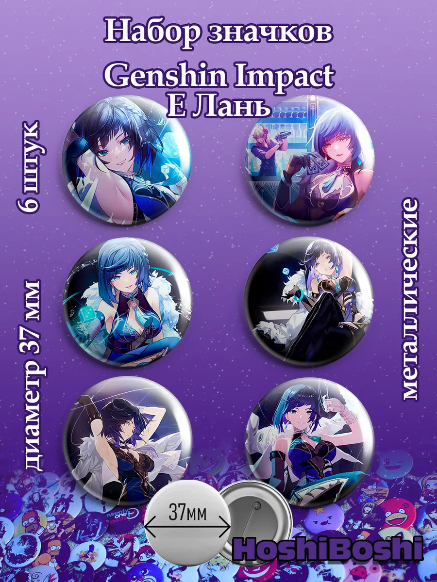 Набор из 6 металлических значков с изображениями из игры Геншин Импакт ( Genshin Impact ).