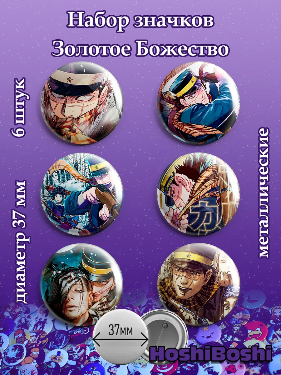 Набор из 6 металлических значков с изображениями из аниме Золотое Божество ( Golden Kamuy ).