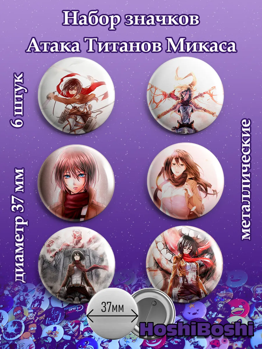 Набор из 6 металлических значков с изображениями из аниме Атака Титанов ( Shingeki no Kyojin Attack on Titan ).