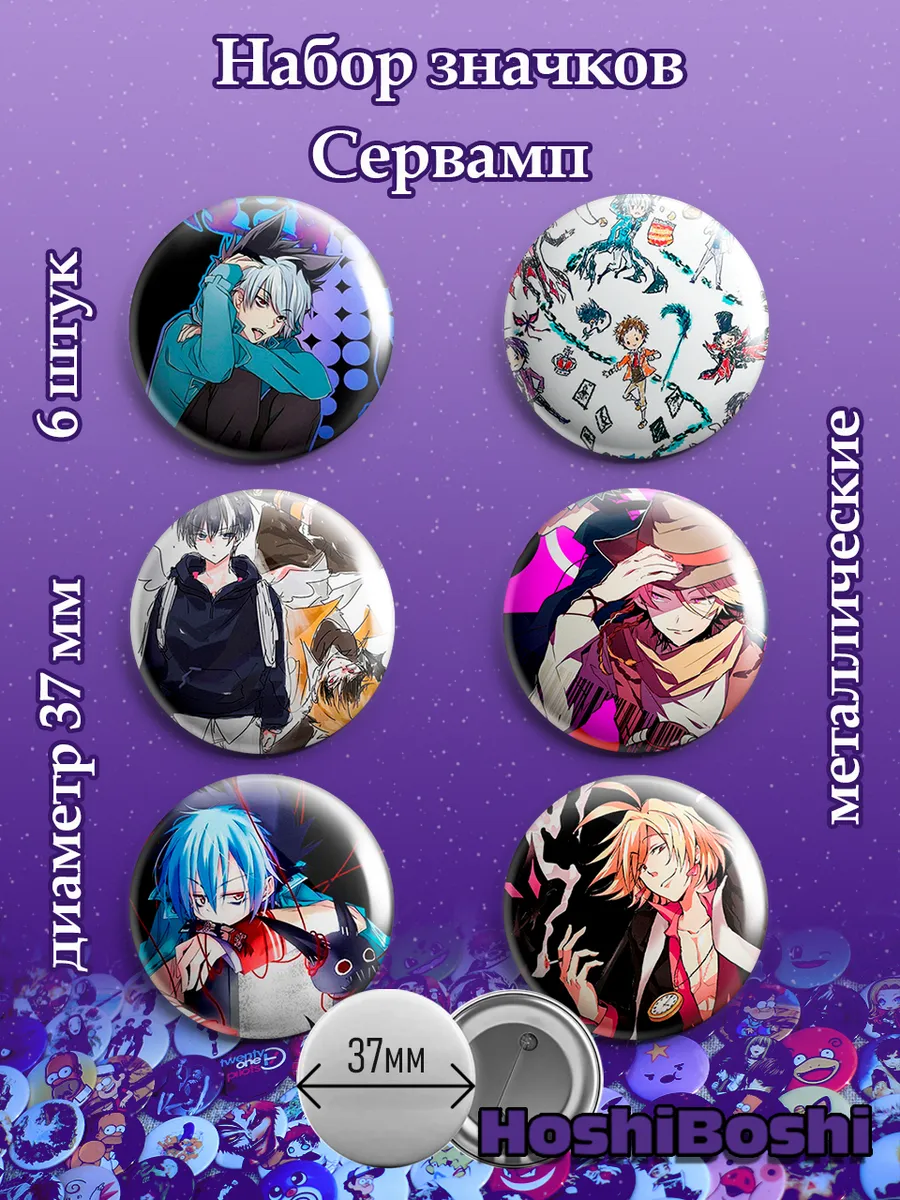 Набор из 6 металлических значков с изображениями из аниме Сервамп Слуга вампир ( Servamp ).