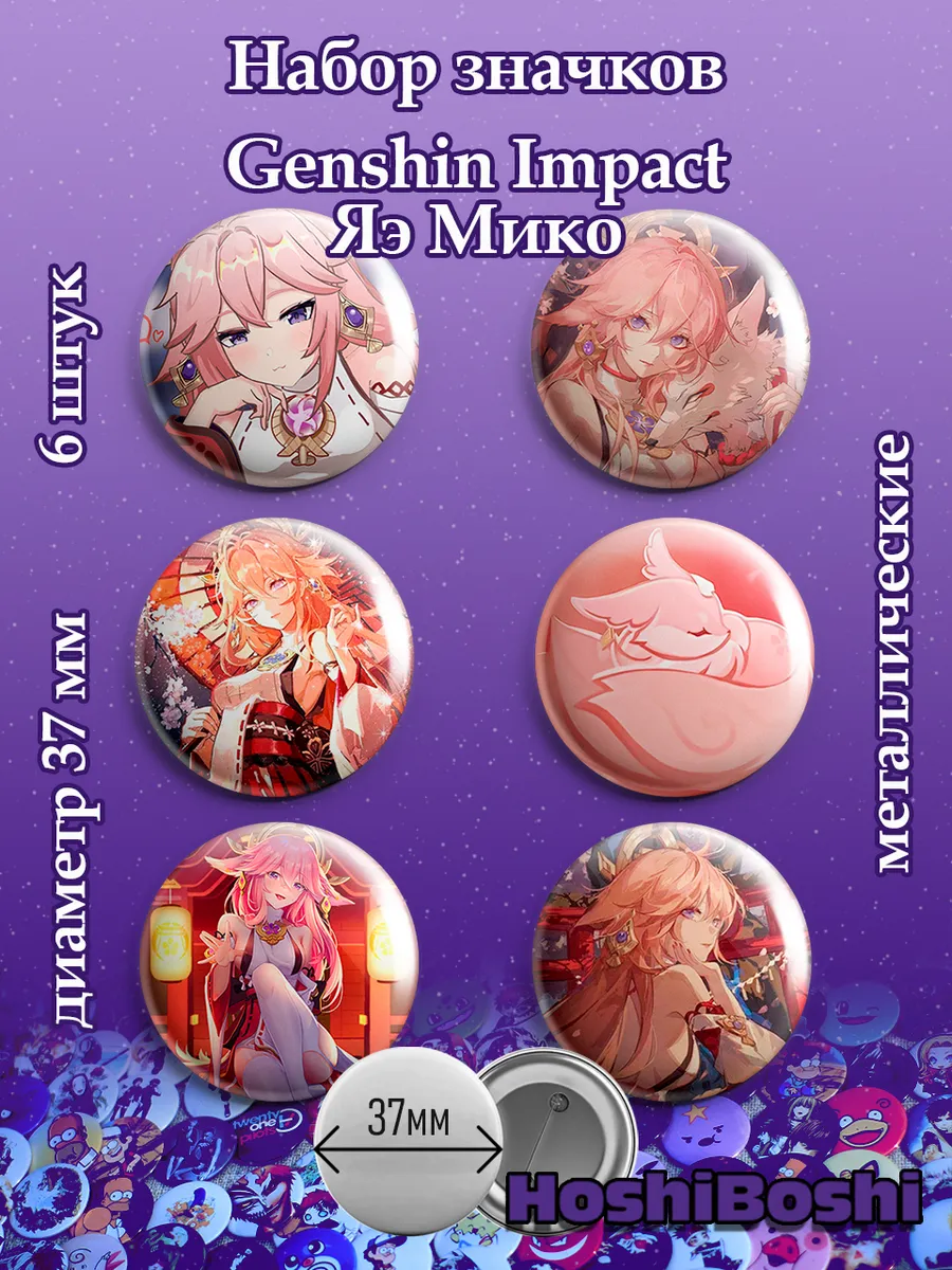 Набор из 6 металлических значков с изображениями из игры Геншин Импакт ( Genshin Impact ).