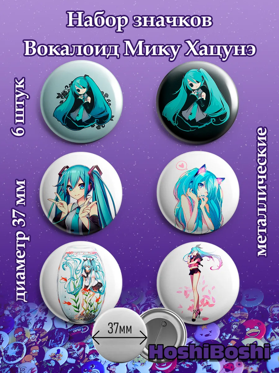 Набор из 6 металлических значков с изображениями Вокалоидов ( Vocaloid ).