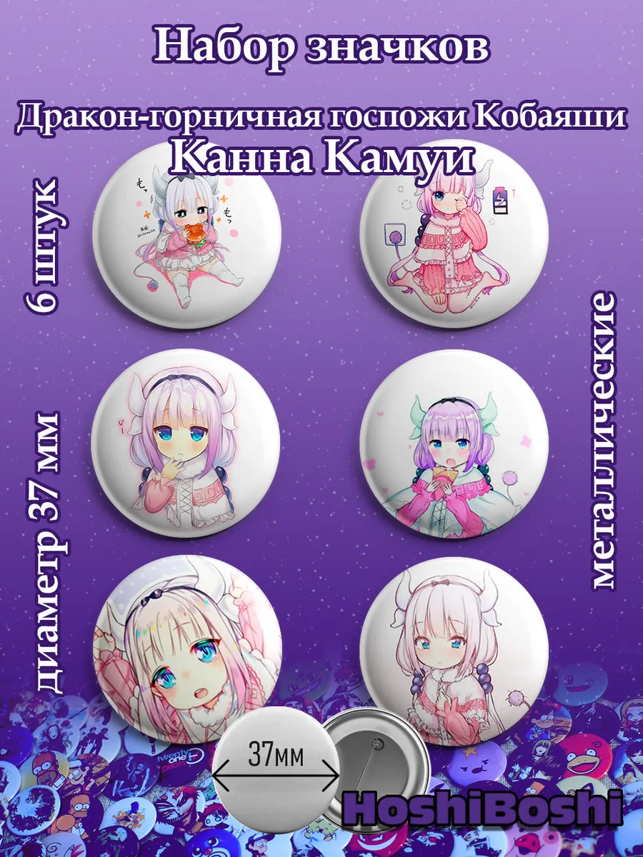 Набор из 6 металлических значков с изображениями из аниме Дракон Горничная госпожи Кобаяши Сан ( Miss Kobayashi's Dragon Maid Kobayashi-san Chi no Maid Dragon ).