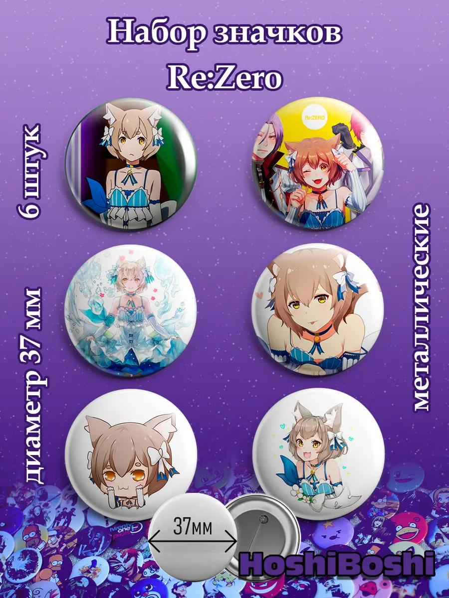Набор из 6 металлических значков с изображениями из аниме Жизнь в альтернативном мире с нуля Резеро ( Re: Zero ).