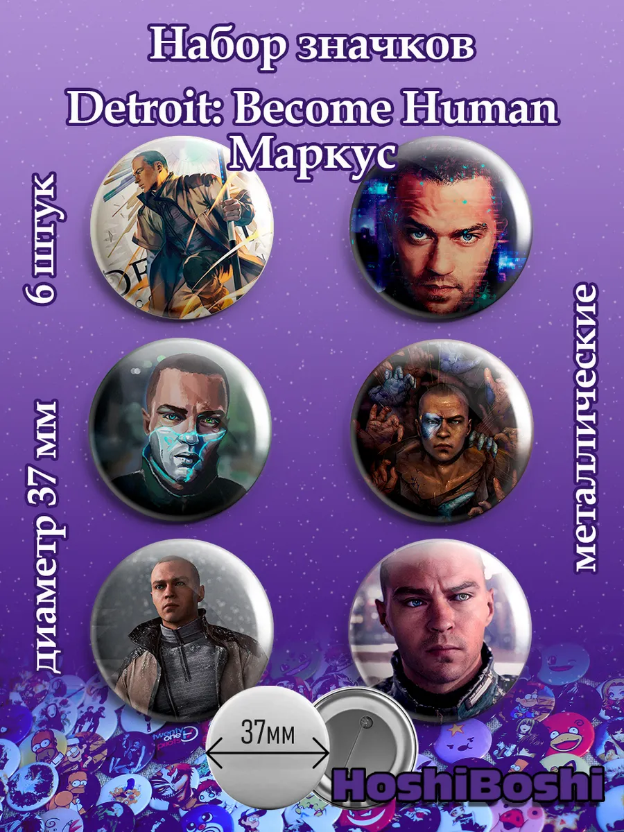 Набор из 6 металлических значков с изображениями из игры Детройт: Стать человеком ( Detroit: Become Human ).