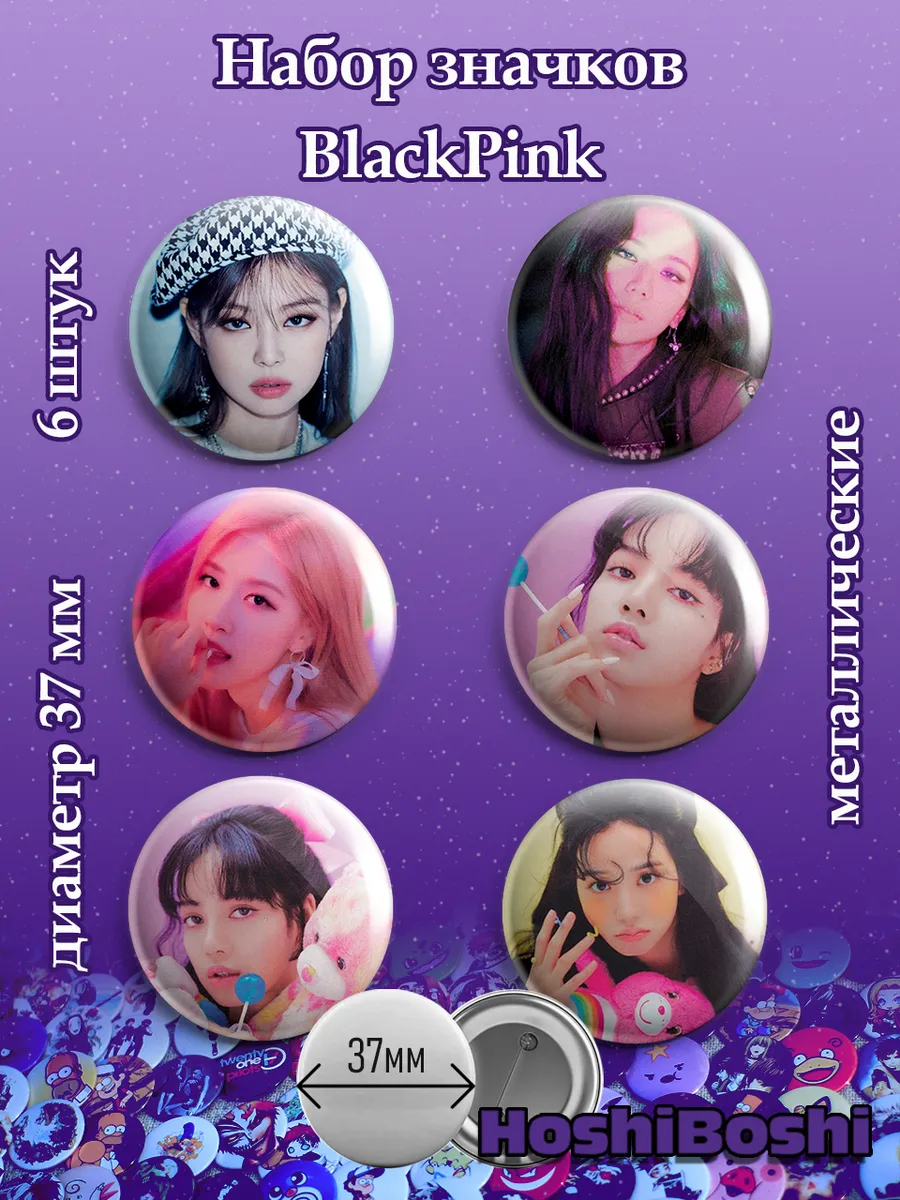 Набор из 6 металлических значков с изображениями Кей-Поп группы Блэкпинк ( Blackpink ).
