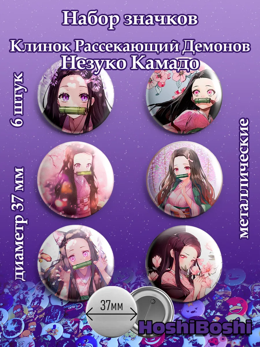 Набор из 6 металлических значков с изображениями из аниме Клинок Рассекающий Демонов ( Demon Slayer: Kimetsu no Yaiba ).