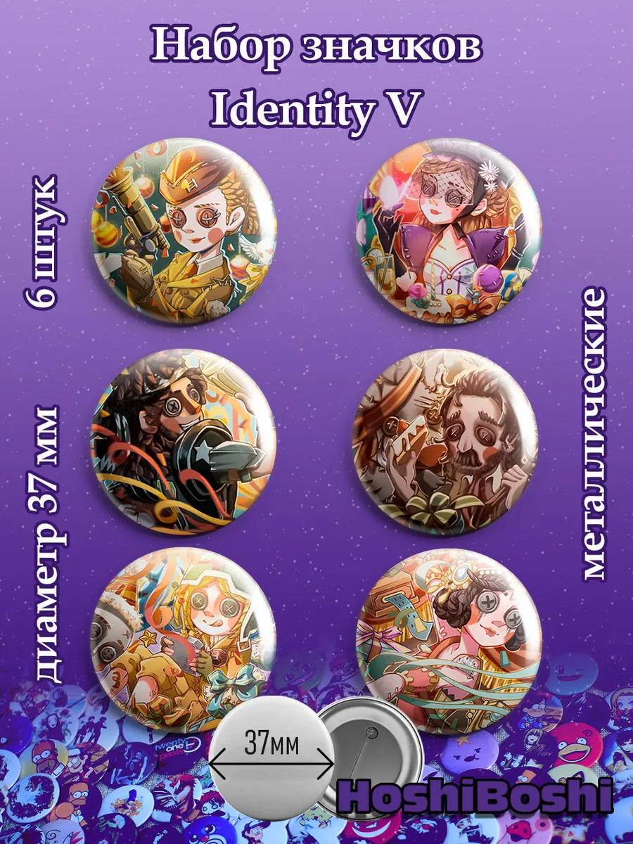 Набор из 6 металлических значков с изображениями из игры Идентити Файф ( Identity V ).