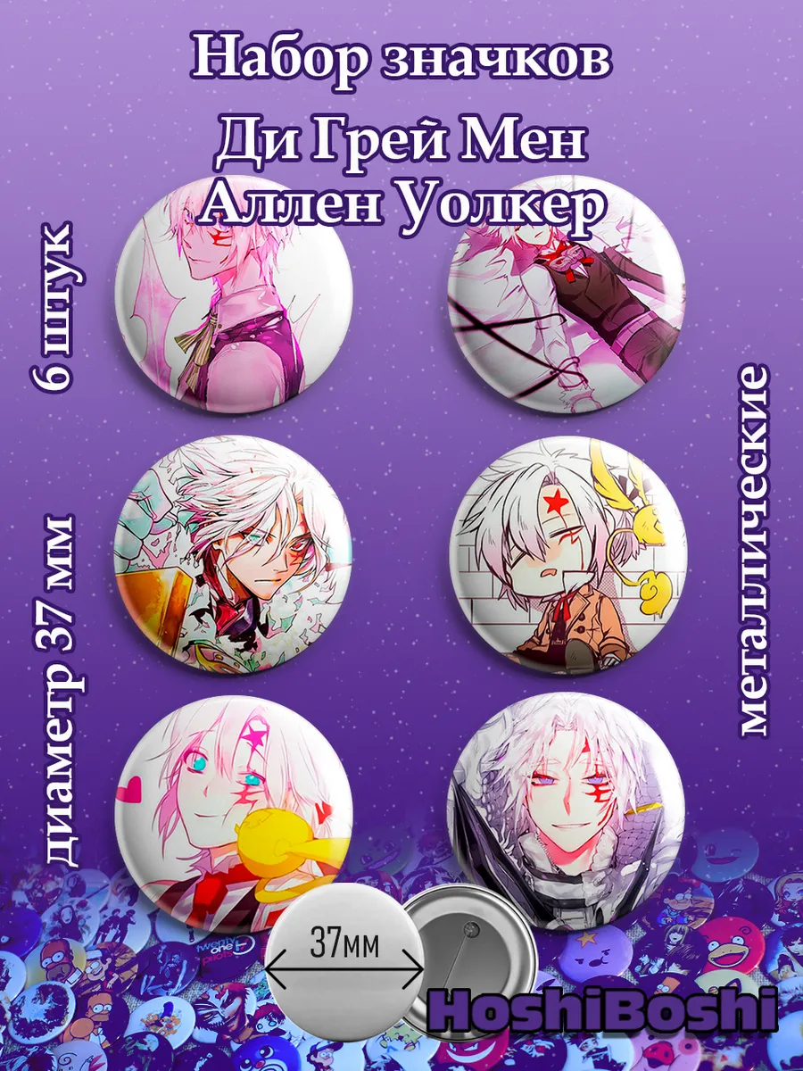 Набор из 6 металлических значков с изображениями из аниме Ди Грей Мен ( D.Gray-man ).