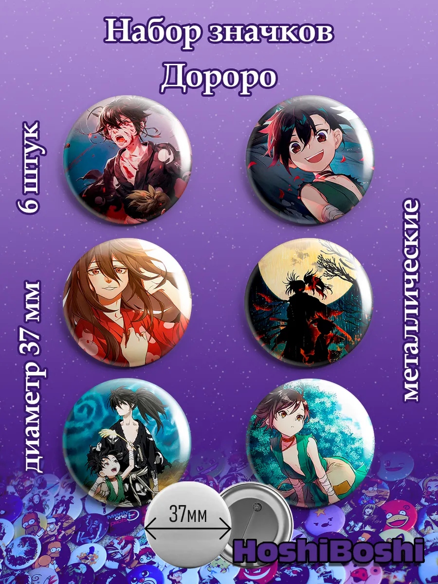 Набор из 6 металлических значков с изображениями из аниме Дороро ( Dororo ).