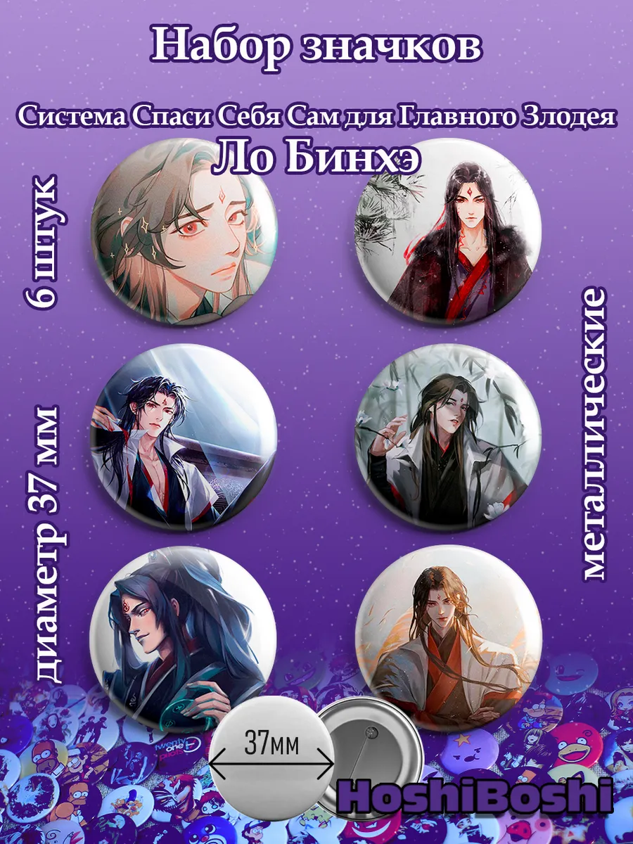 Набор из 6 металлических значков с изображениями из аниме Система спаси себя сам для главного злодея ( Chuan Shu Zijiu Zhinan ).