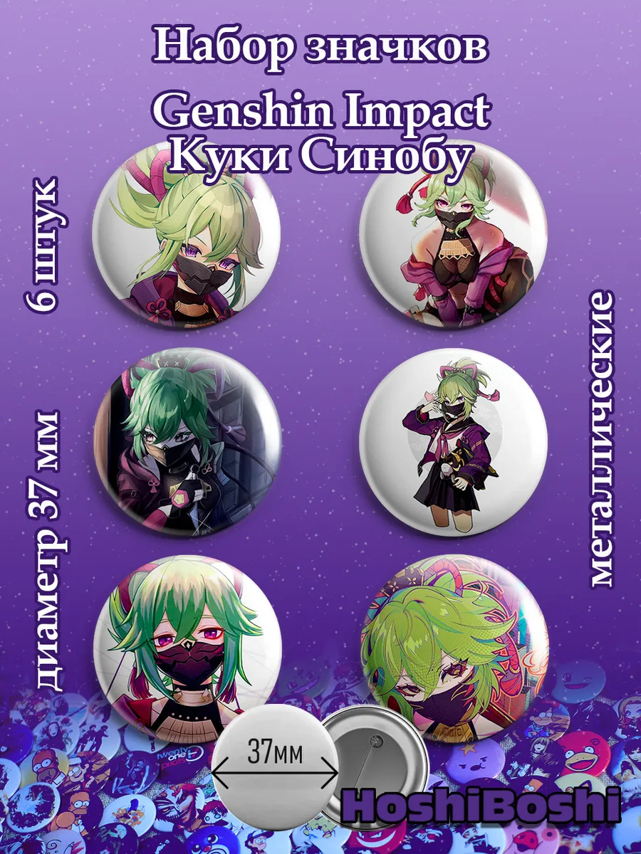 Набор из 6 металлических значков с изображениями из игры Геншин Импакт ( Genshin Impact ).