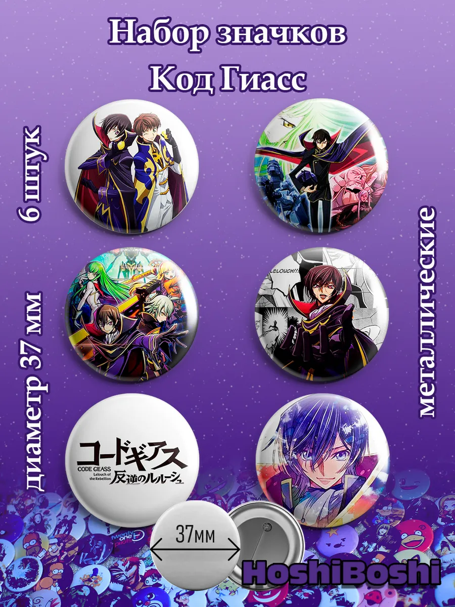 Набор из 6 металлических значков с изображениями из аниме Код Гиас ( Code Geass ).