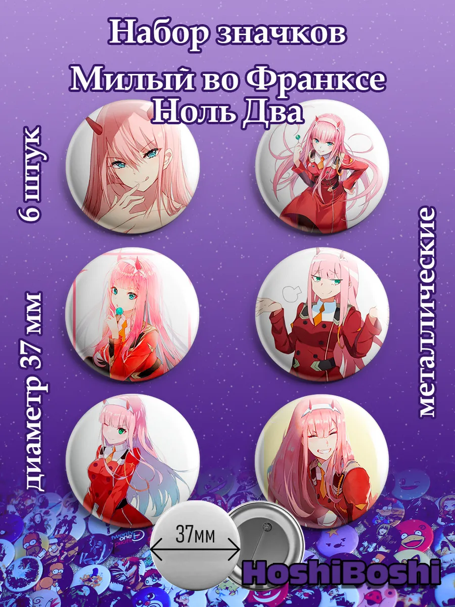 Набор из 6 металлических значков с изображениями из аниме Милый во Франксе ( Darling in the Franxx ).