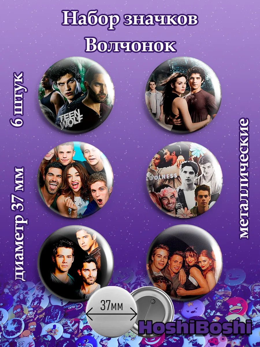 Набор из 6 металлических значков с изображениями из сериала Волчонок ( Teen Wolf ).