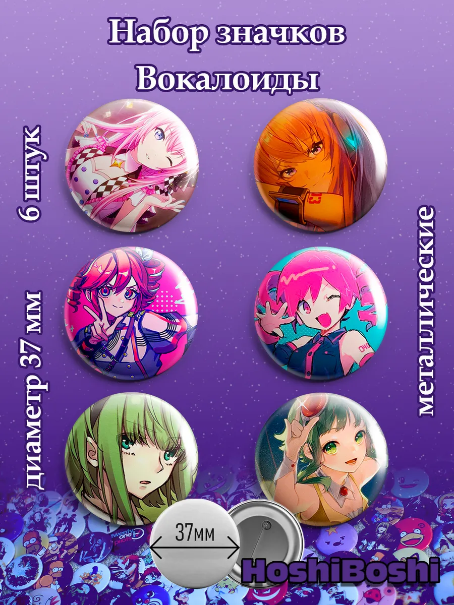 Набор из 6 металлических значков с изображениями Вокалоидов ( VOCALOID ).