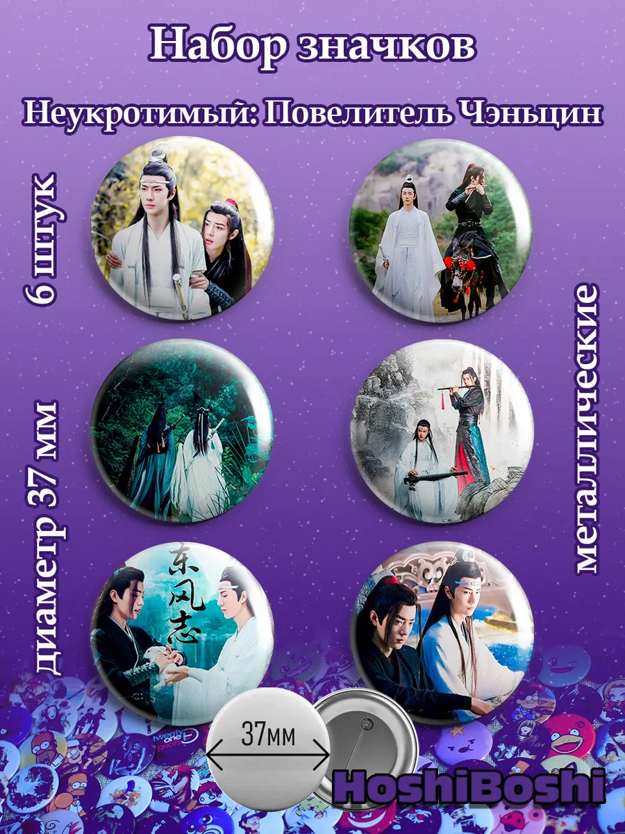 Набор из 6 металлических значков с изображениями из дорамы Неукротимый Повелитель Чэньцин Магистр дьявольского культа ( Mo dao zu shi ).