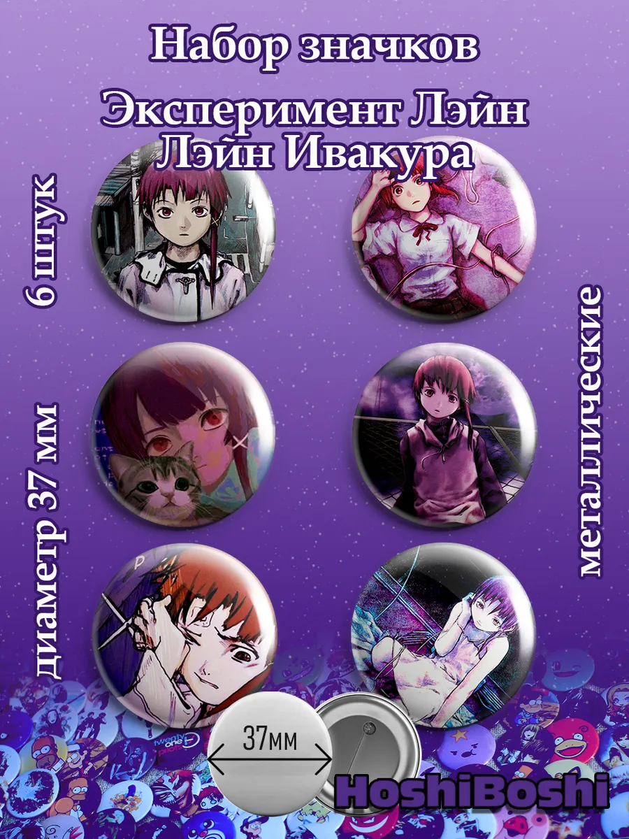 Набор из 6 металлических значков с изображениями из аниме Эксперимент Лэйн ( Serial Experiments Lain ).