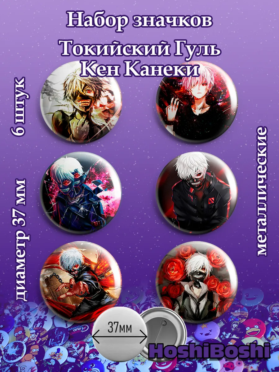 Набор из 6 металлических значков с изображениями из аниме Токийский гуль ( Tokyo Ghoul ).