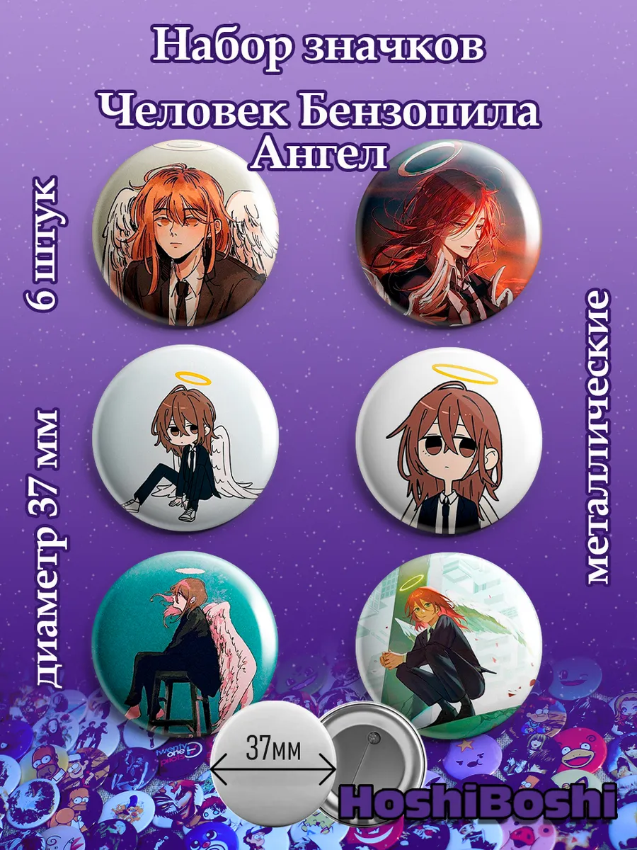 Набор из 6 металлических значков с изображениями из аниме Человек Бензопила ( Chainsaw Man ).