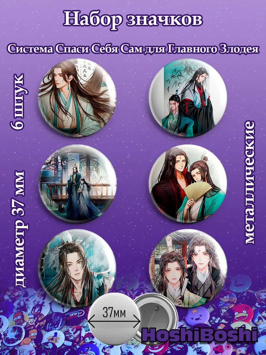Набор из 6 металлических значков с изображениями из аниме Система спаси себя сам для главного злодея ( Chuan Shu Zijiu Zhinan ).