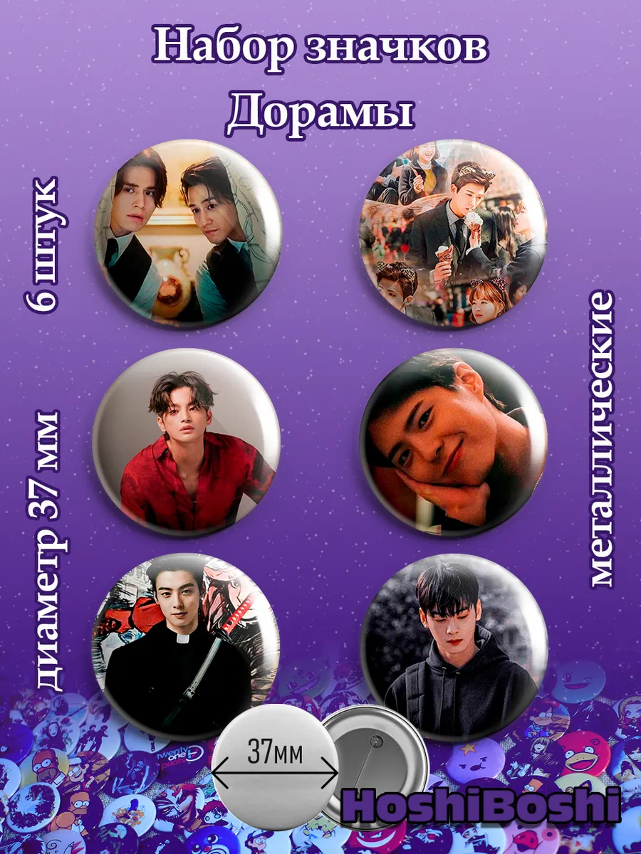Набор из 6 металлических значков с изображениями из Дорам ( TV drama ).