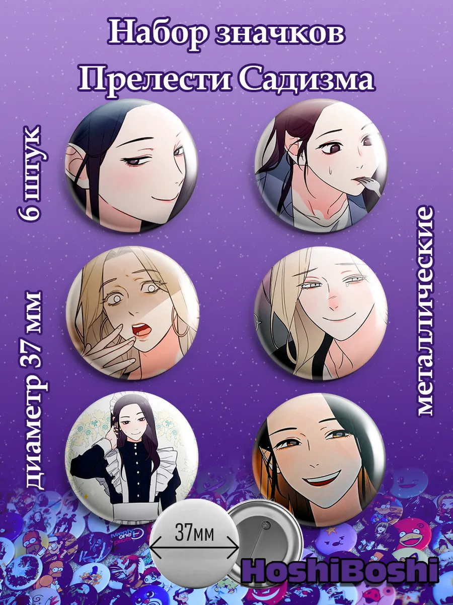 Набор из 6 металлических значков с изображениями из манхвы Прелести садизма ( Sadistic Beauty ).