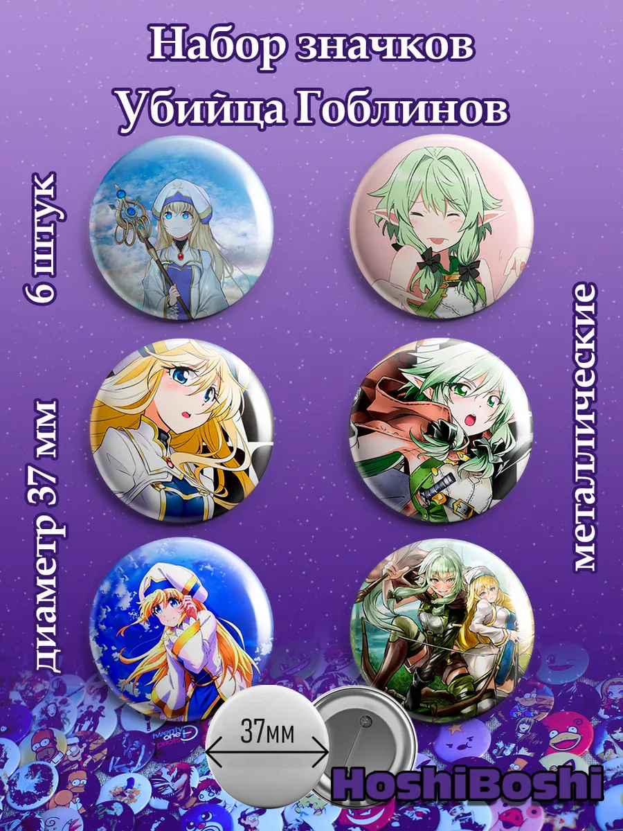 Набор из 6 металлических значков с изображениями из аниме Убийца гоблинов ( Goblin Slayer ).