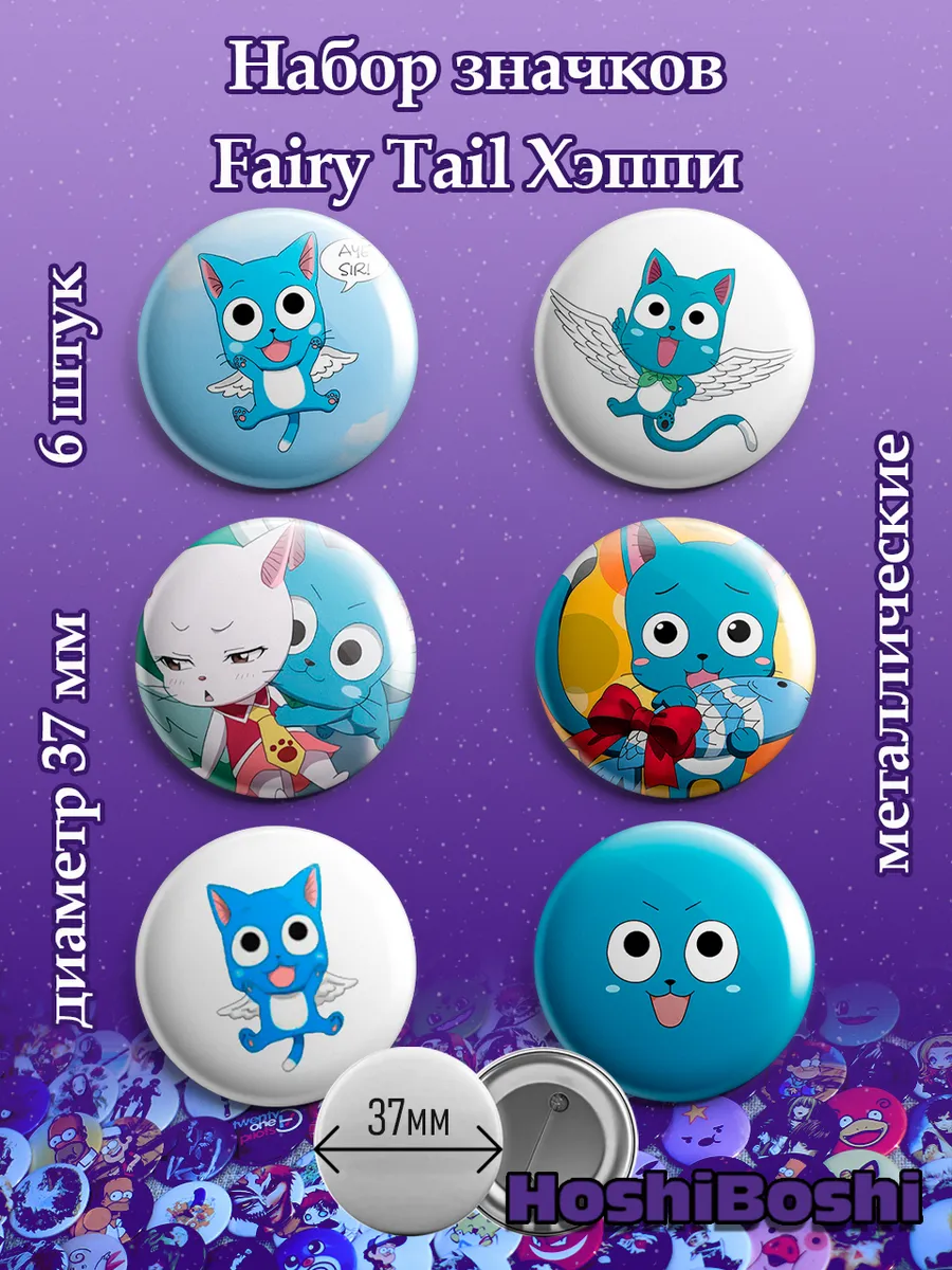 Набор из 6 металлических значков с изображениями из аниме Сказка о Хвосте Феи ( Fairy Tail ).