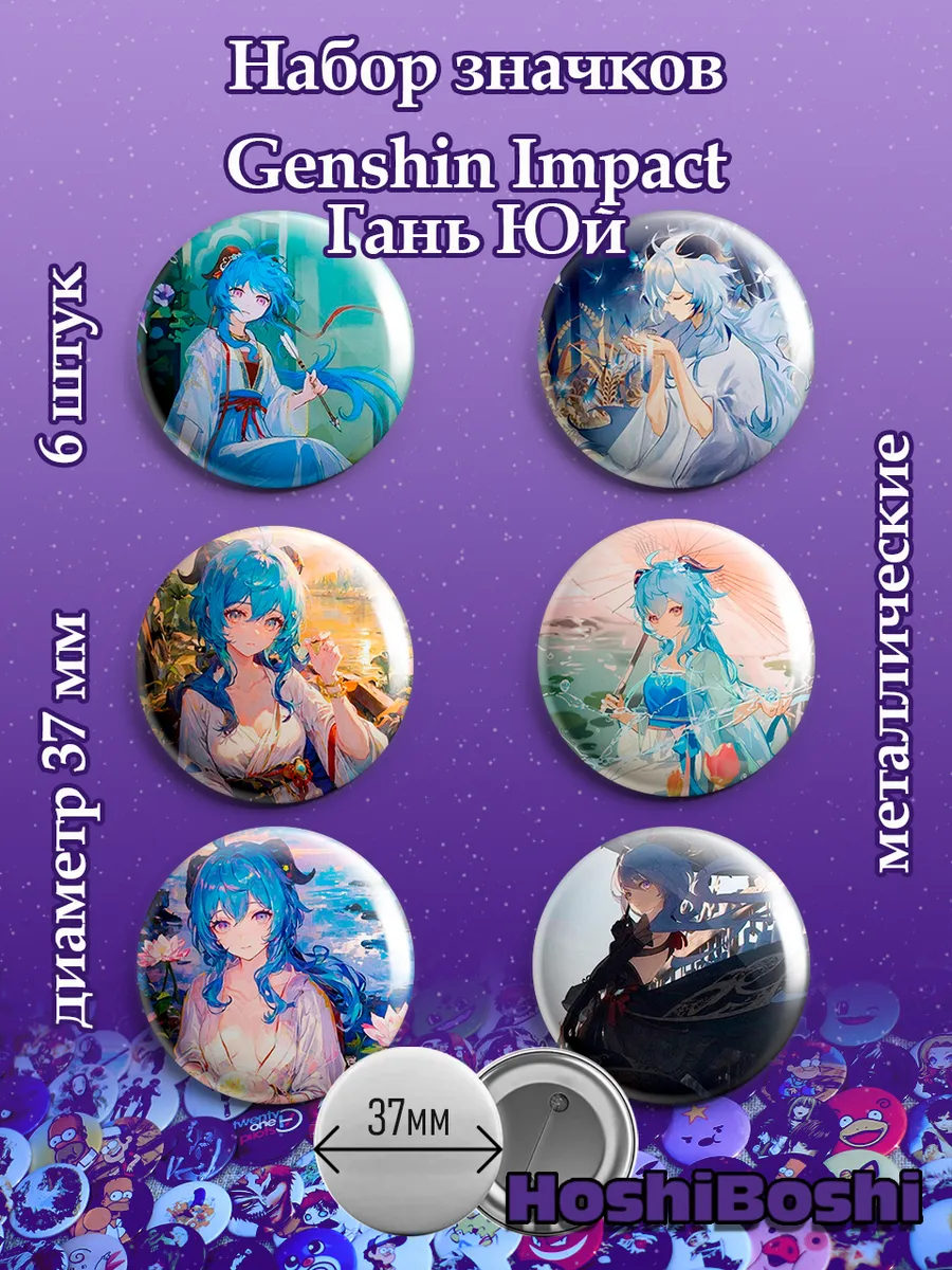 Набор из 6 металлических значков с изображениями из игры Геншин Импакт ( Genshin Impact ).