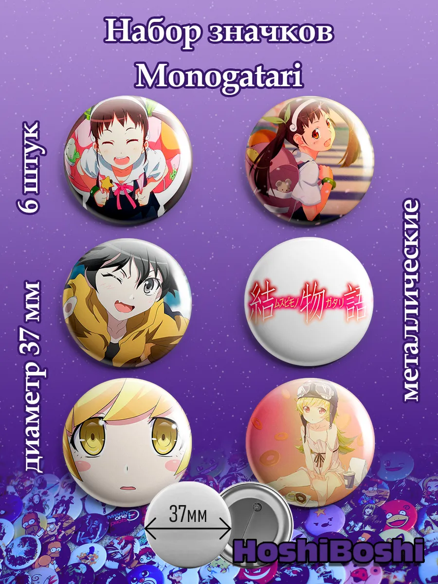 Набор из 6 металлических значков с изображениями из аниме Моногатари Истории монстров ( Monogatari ).