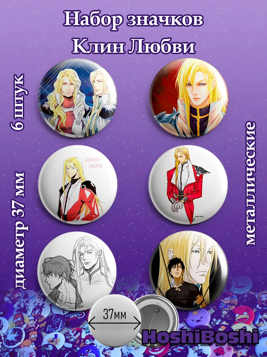 Набор из 6 металлических значков с изображениями из аниме Клин Любви ( Ai no Kusabi ).