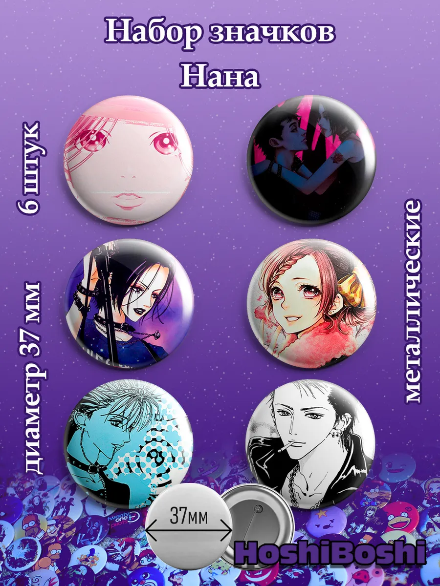 Набор из 6 металлических значков с изображениями из аниме Нана ( Nana ).