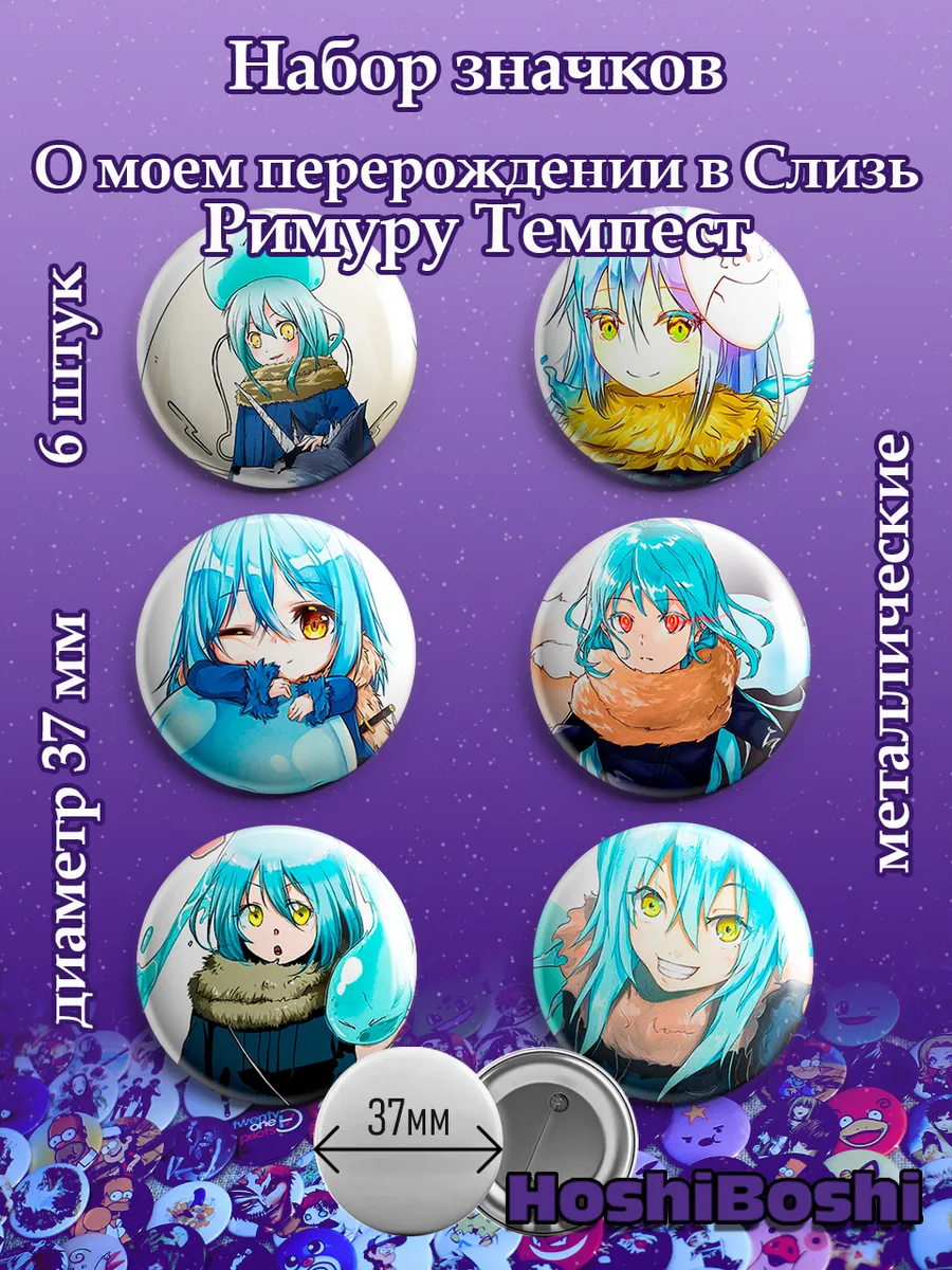 Набор из 6 металлических значков с изображениями из аниме О моем перерождении в слизь ( Tensei shitara Slime Datta Ken ).
