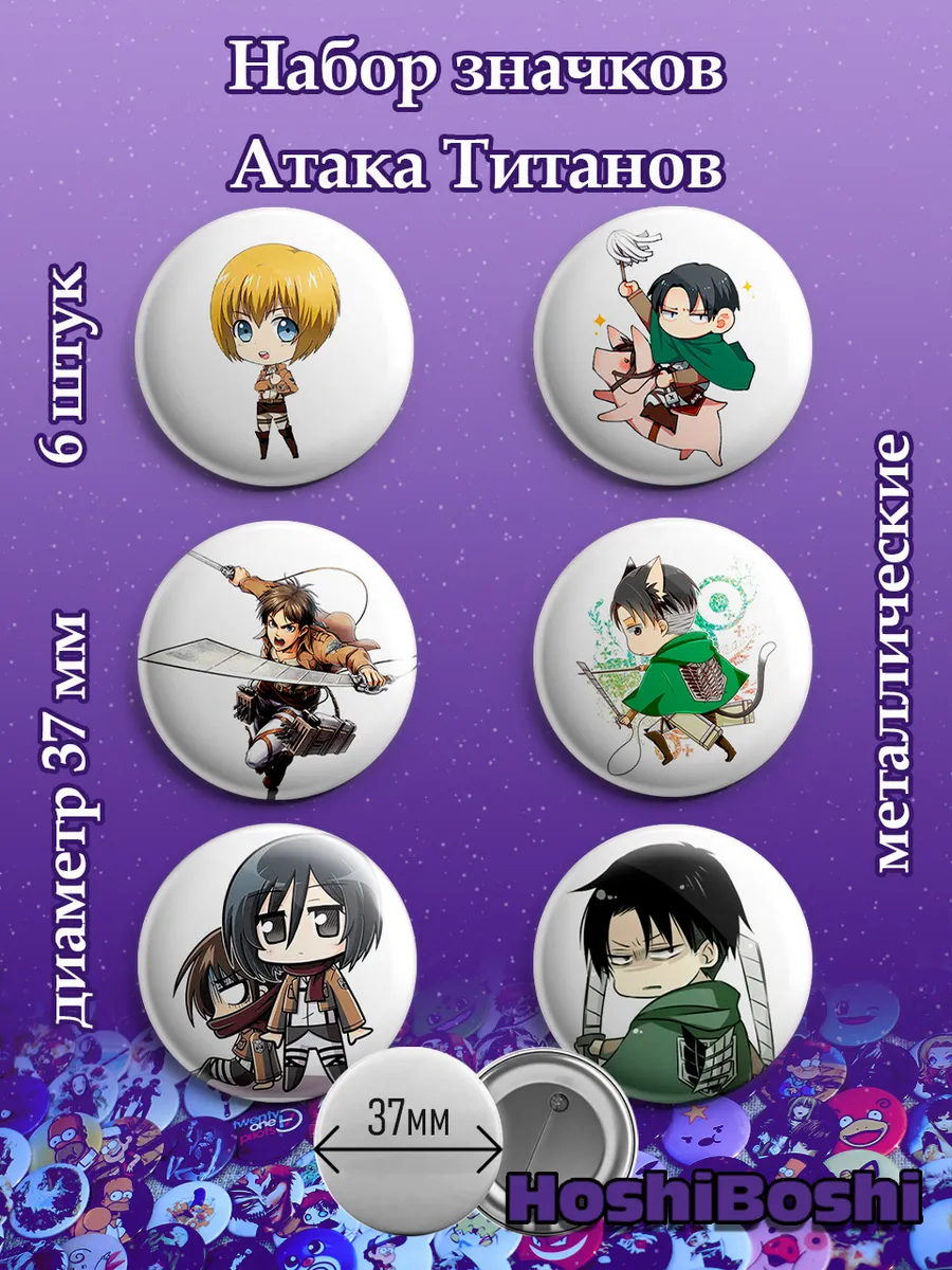 Набор из 6 металлических значков с изображениями из аниме Атака Титанов ( Shingeki no Kyojin Attack on Titan ).