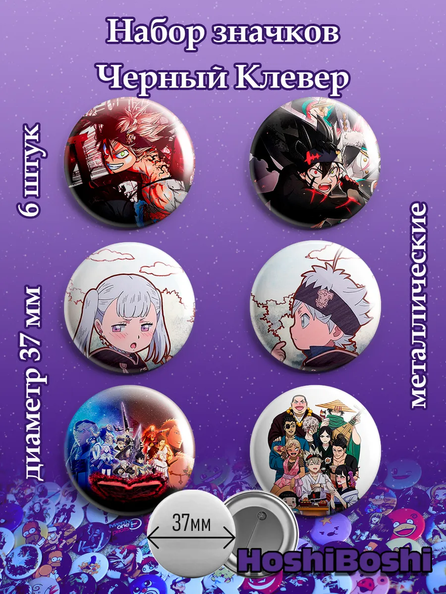 Набор из 6 металлических значков с изображениями из аниме Черный Клевер ( Black Clover ).