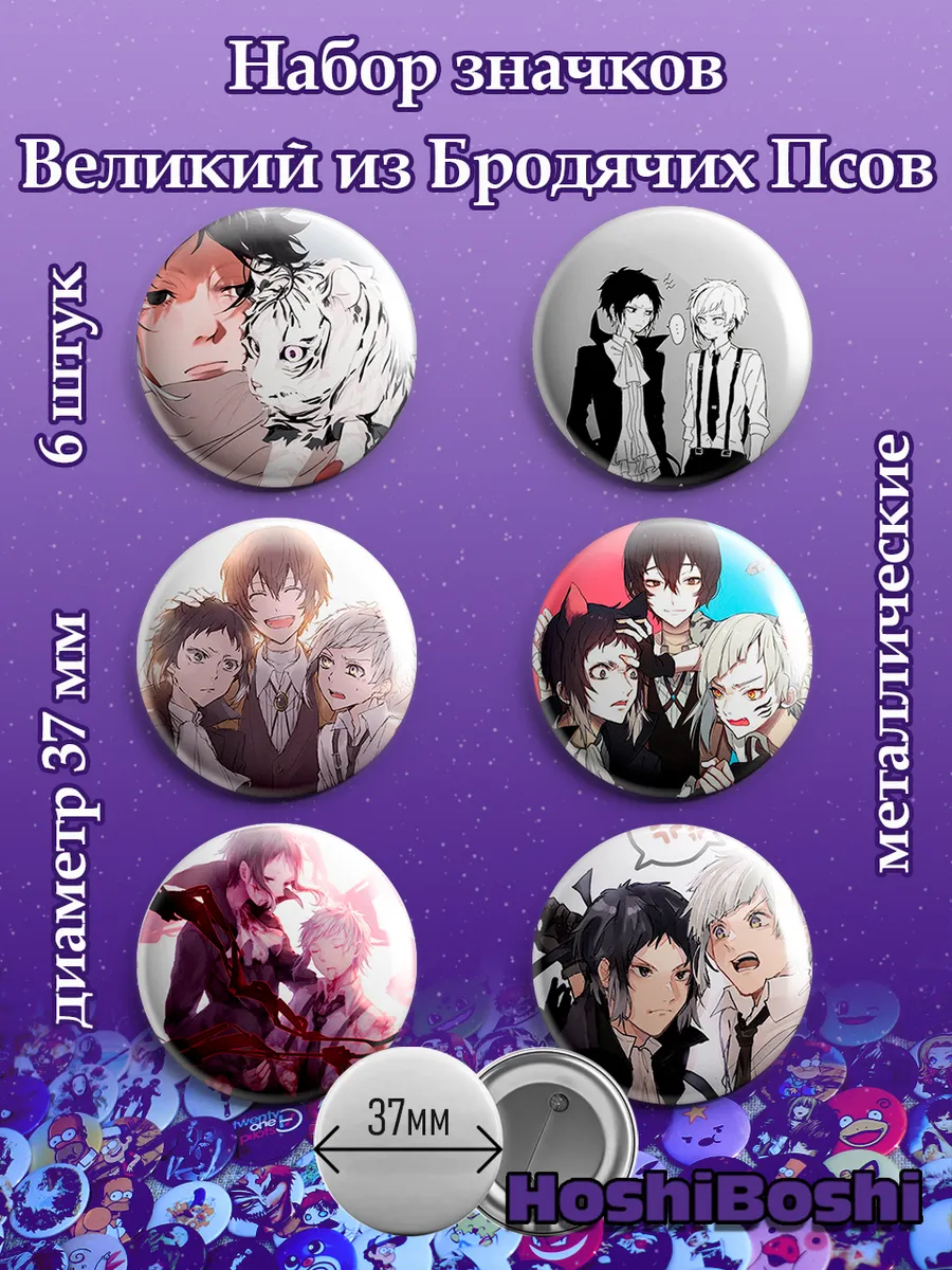 Набор из 6 металлических значков с изображениями из аниме Великий из Бродячих псов ( Bungo Stray Dogs ).