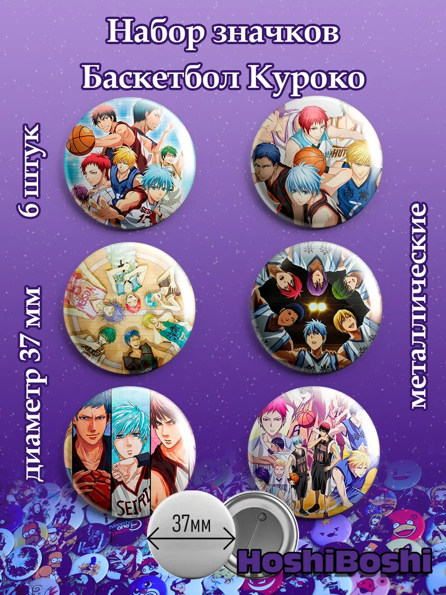 Набор из 6 металлических значков с изображениями из аниме Баскетбол Куроко ( Kuroko no Basuke ).