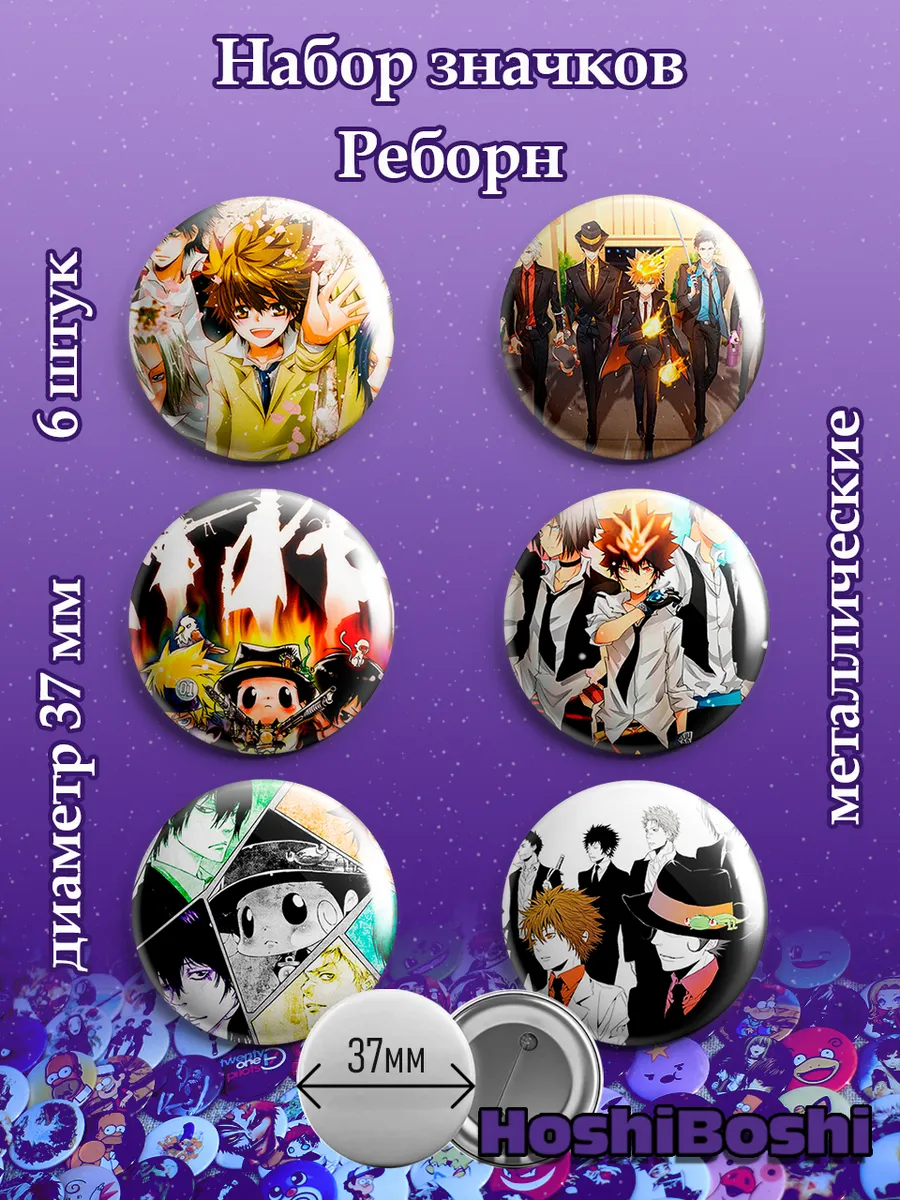 Набор из 6 металлических значков с изображениями из аниме Реборн Репетитор Киллер ( Katei Kyoshi Hitman Reborn! ).