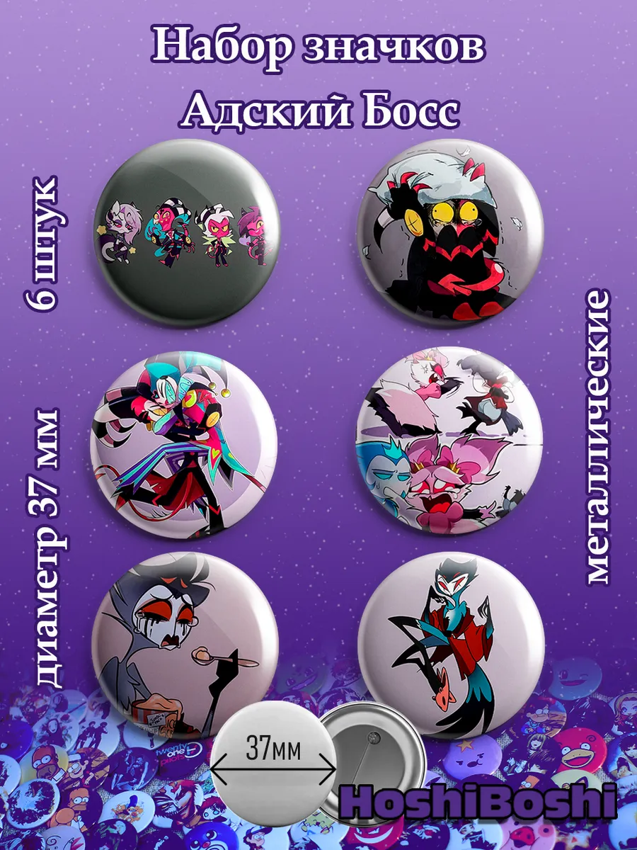 Набор из 6 металлических значков с изображениями из мультсериала Адский Босс ( Helluva Boss ).
