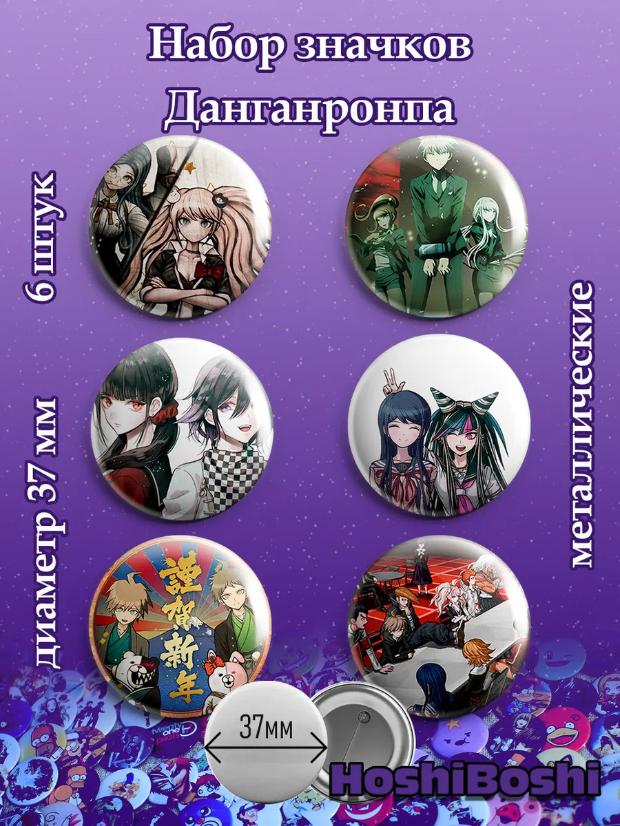 Набор из 6 металлических значков с изображениями из аниме Данганронпа ( Danganronpa ).