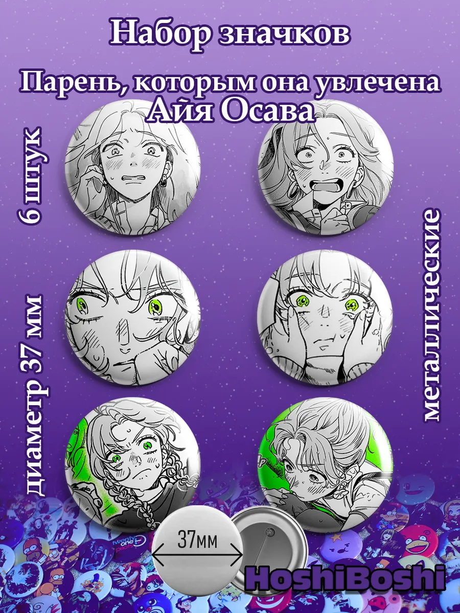Набор из 6 металлических значков с изображениями из манхвы Парень которым она увлечена на самом деле не парень ( The Guy She Was Interested in Wasn't a Guy at All ).