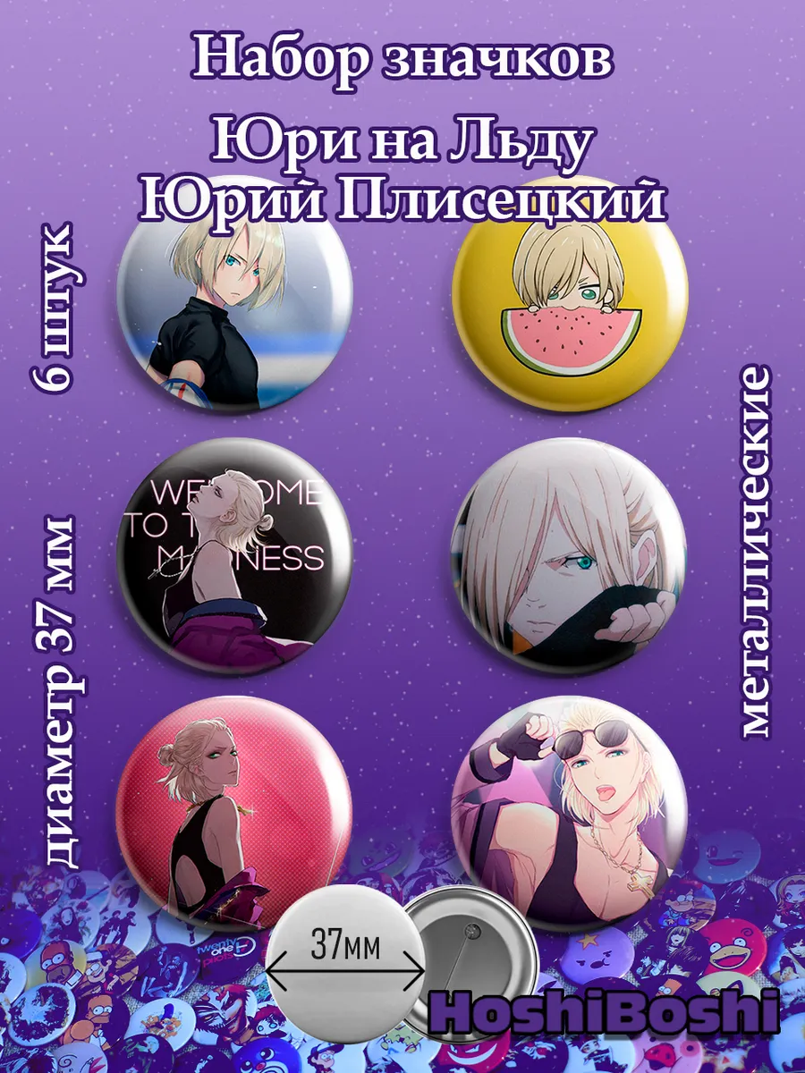 Набор из 6 металлических значков с изображениями из аниме Юри на льду ( Yuri on Ice ).