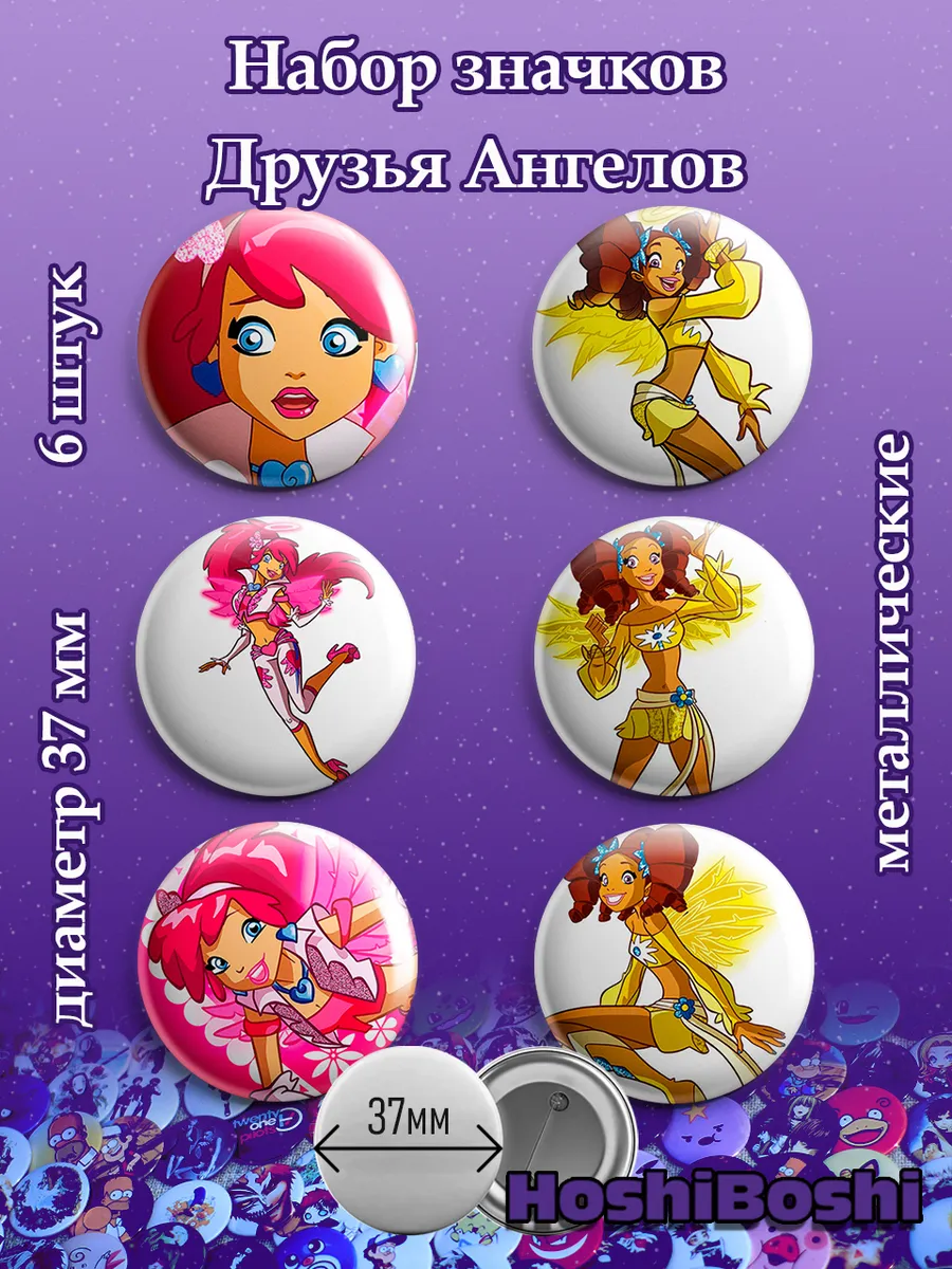 Набор из 6 металлических значков с изображениями из мультсериала Друзья Ангелов ( Angel’s Friends ).