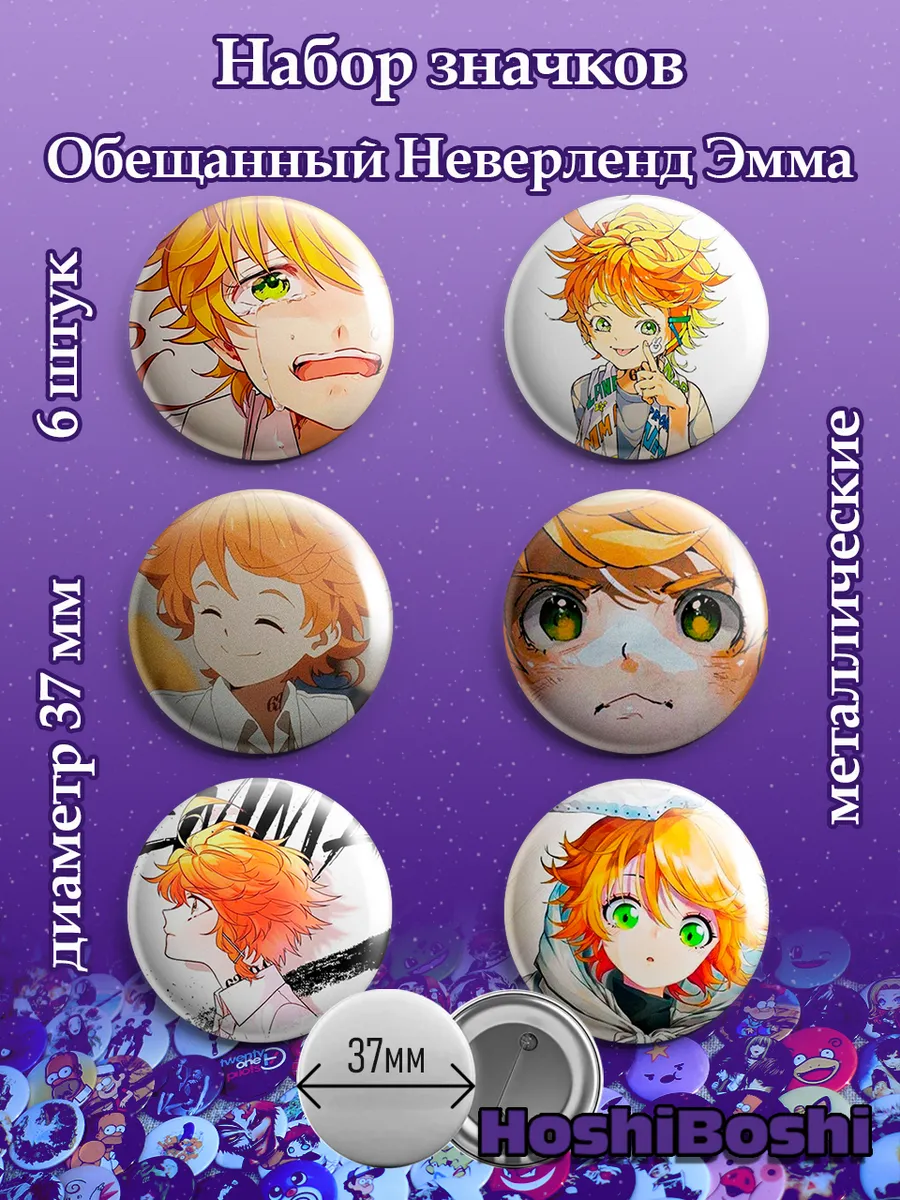 Набор из 6 металлических значков с изображениями из аниме Обещанный Неверленд ( The Promised Neverland ).