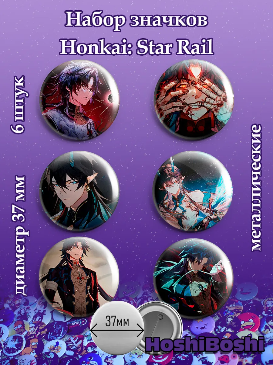 Набор из 6 металлических значков с изображениями из игры Хонкай Стар Рейл ( Honkai: Star Rail ).