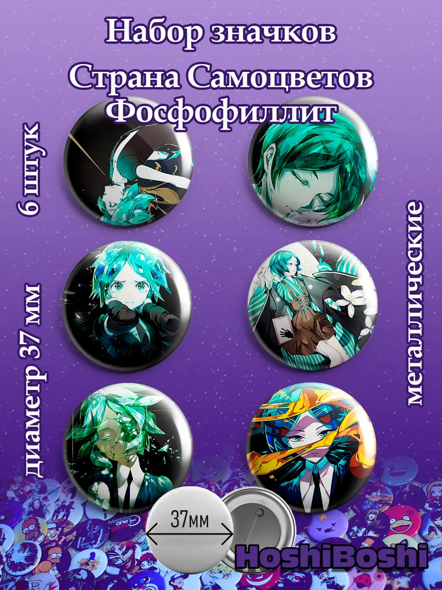 Набор из 6 металлических значков с изображениями из аниме Страна самоцветов ( Houseki no Kuni ).