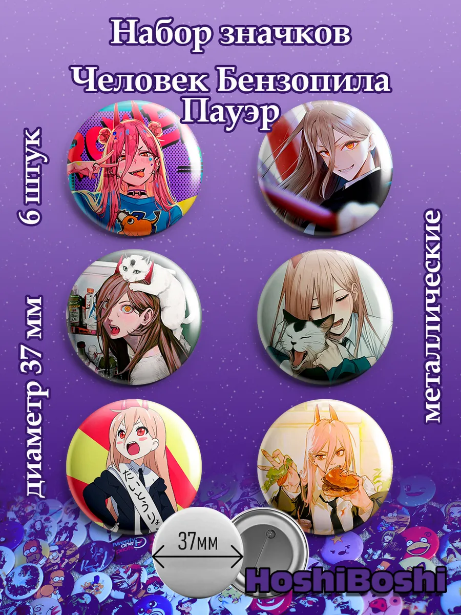 Набор из 6 металлических значков с изображениями из аниме Человек Бензопила ( Chainsaw Man ).